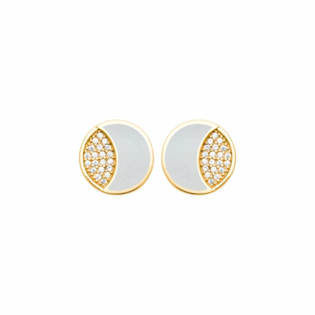 Boucles d'oreilles en plaqué or, nacre et oxydes de zirconium