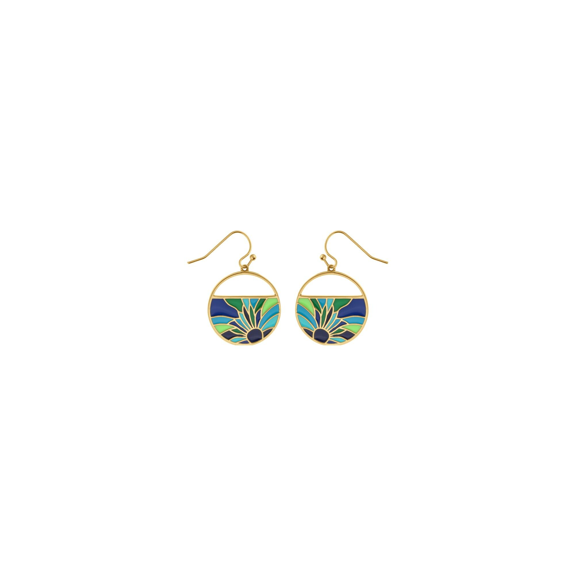 Boucles d'oreilles acier doré jaune stella mia résine bleu et verte Description détaillée