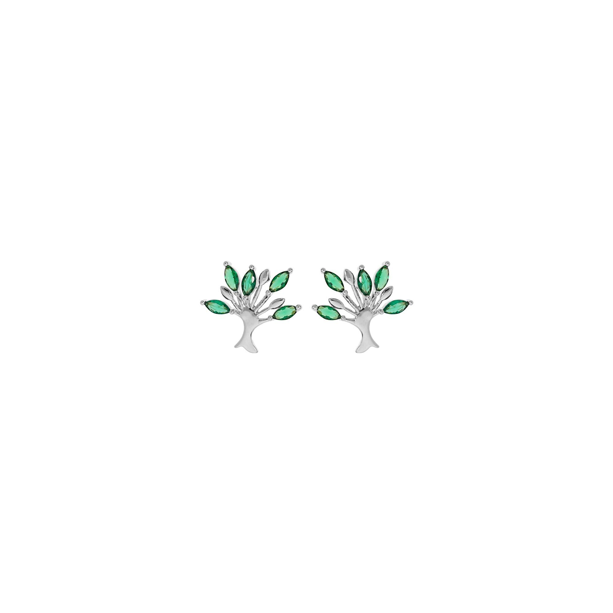 Boucles d'oreilles tige argent rhodié arbre de vie oxydes verts Description détaillée