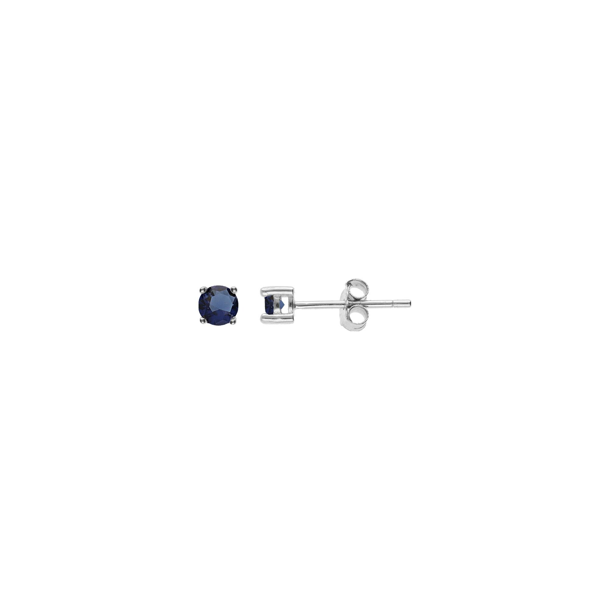 Boucles d'oreilles tige argent rhodié ronde 3mm oxyde bleu foncé serti 4 griffes Description détaillée