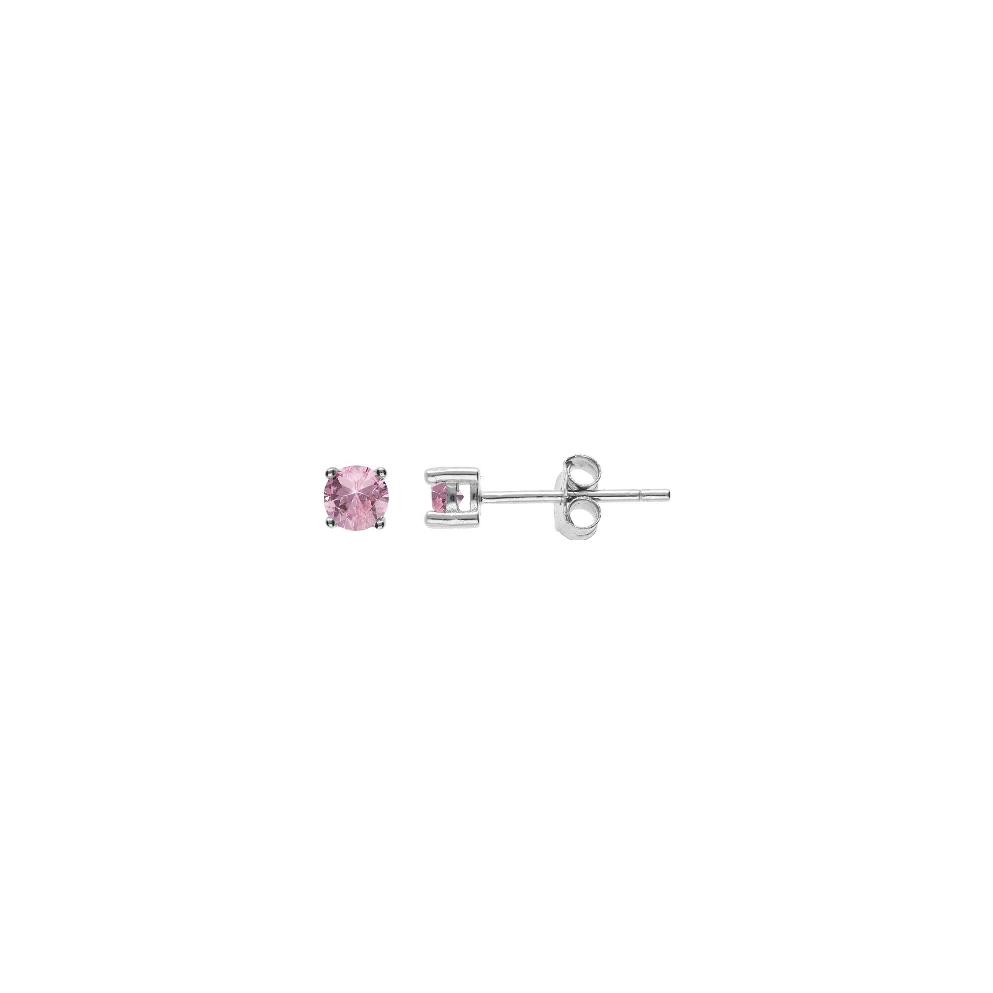 Boucles d'oreilles tige solitaire argent rhodié ronde 3mm oxyde rose pale serti 4 griffes Description détaillée