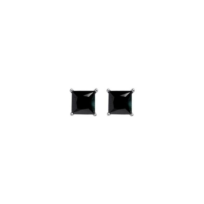 Boucles d'oreilles tige solitaire carré pierre synthétique noire argent rhodié 7mm Description détaillée
