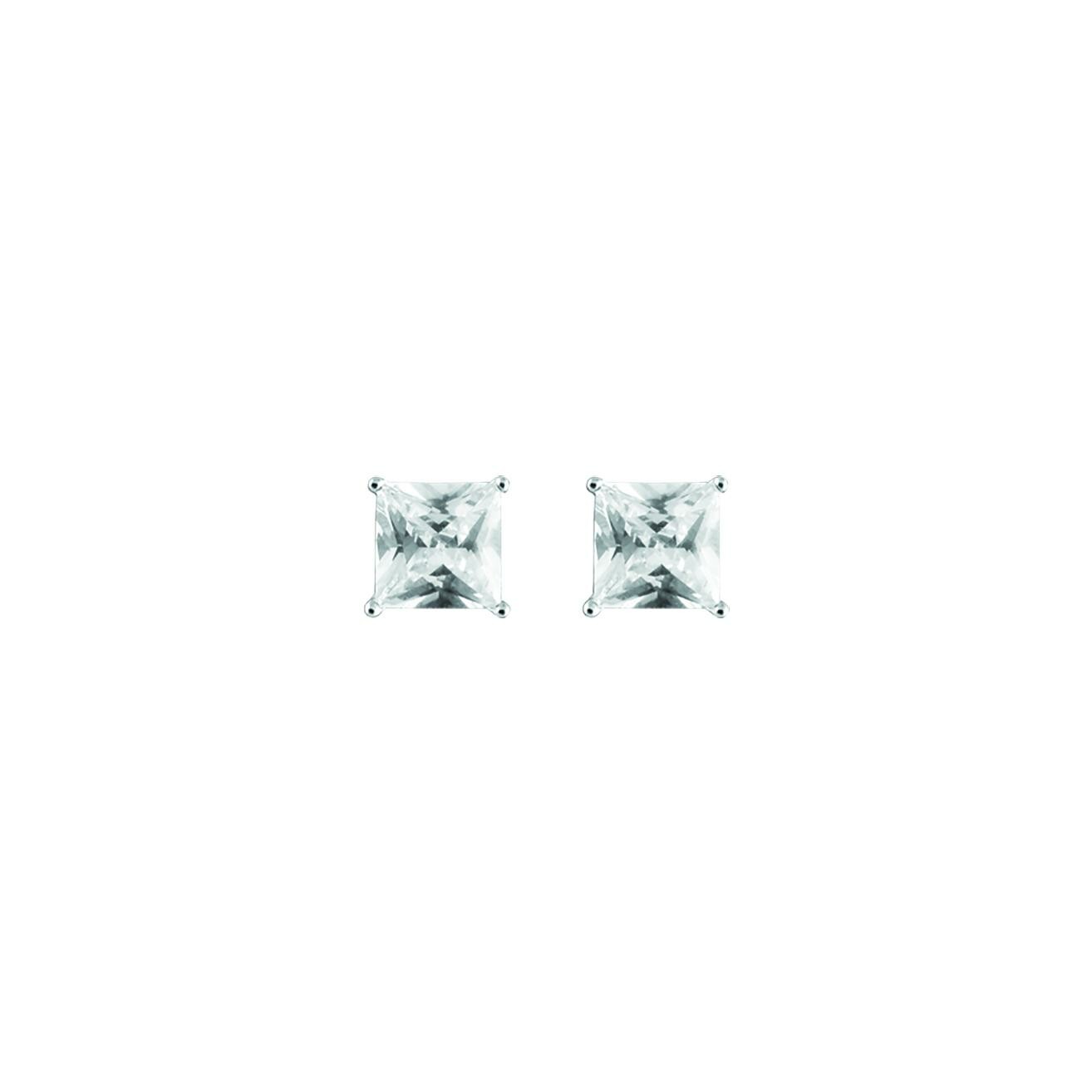 Boucles d'oreilles tige solitaire pierre carré synthétique blanche argent rhodié 9mm Description détaillée