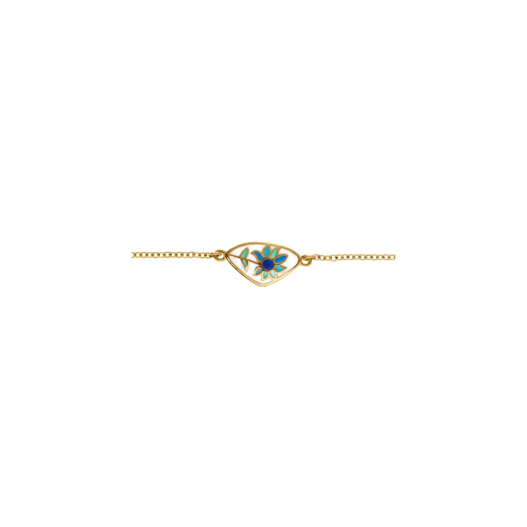 Bracelet acier doré stella mia résine blanche avec fleur bleu 16+3cm Description détaillée