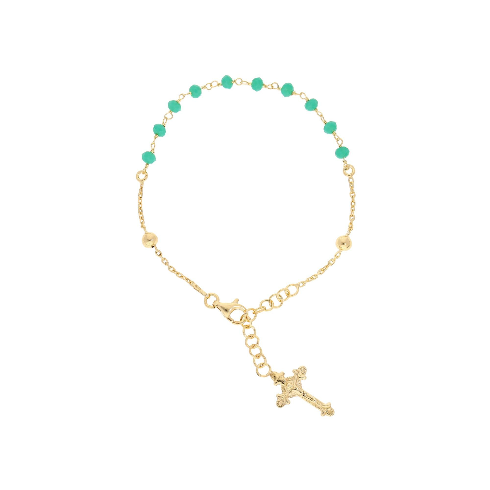 Bracelet argent et dorure jaune chapelet pierres facetes turquoises imitation 16,5+2,5cm Description détaillée