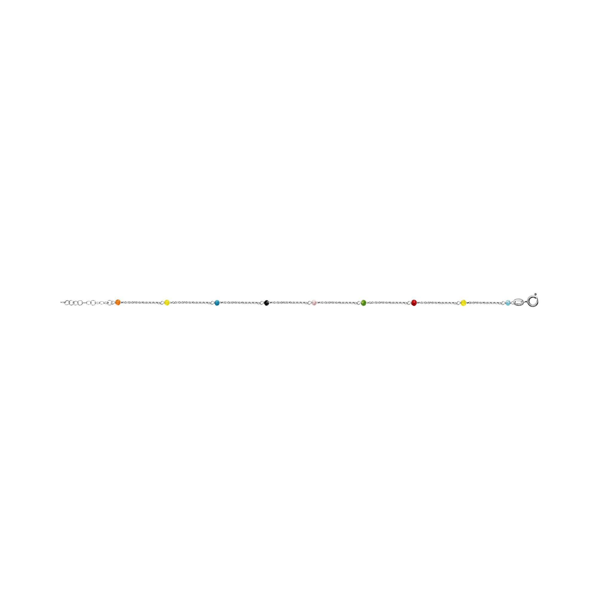 Chaîne cheville argent rhodié boules perles de verre facetées multicolores 23+3cm Description détaillée