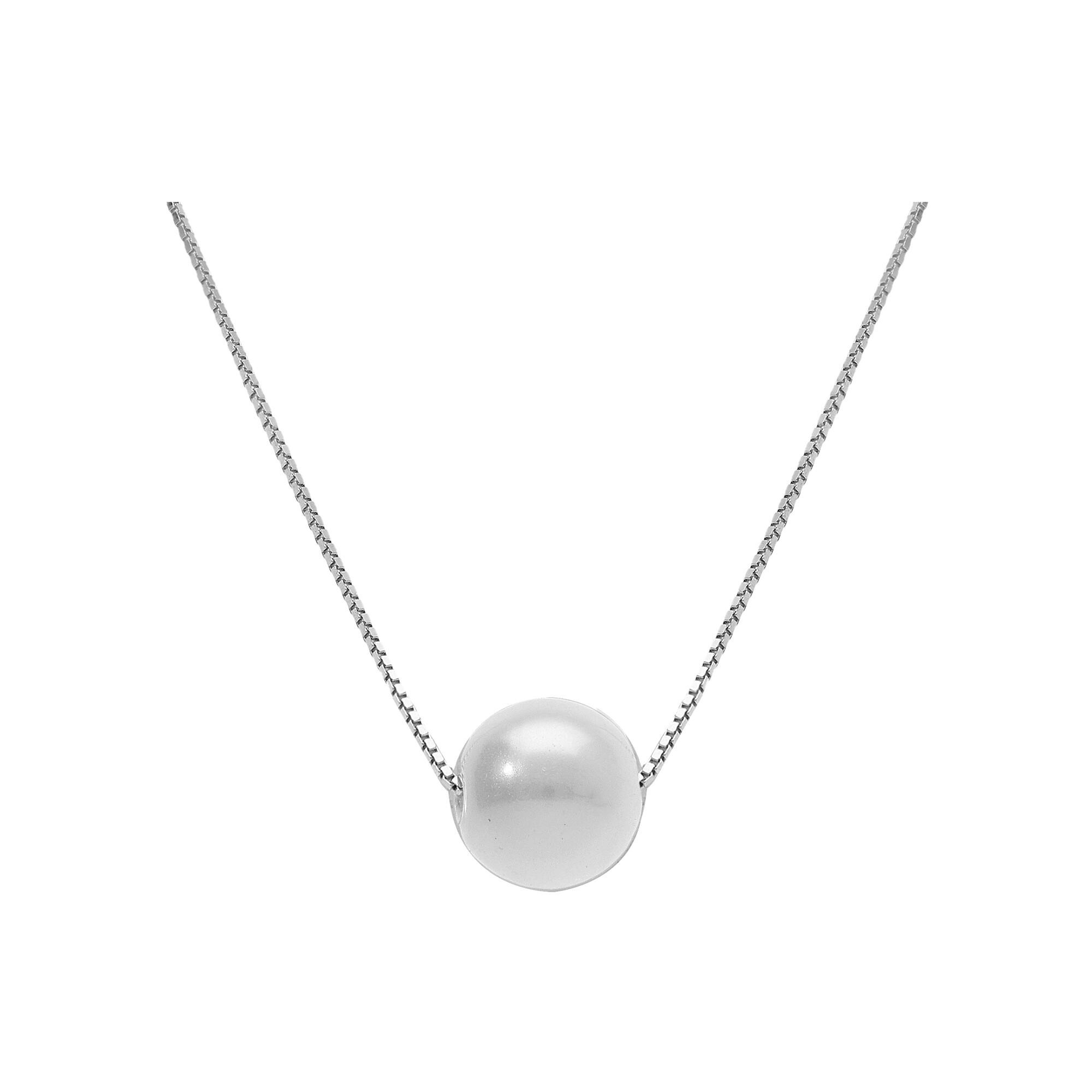Collier argent rhodié chaîne vénitienne perle blanche imitation 8mm 42+3cm Description détaillée