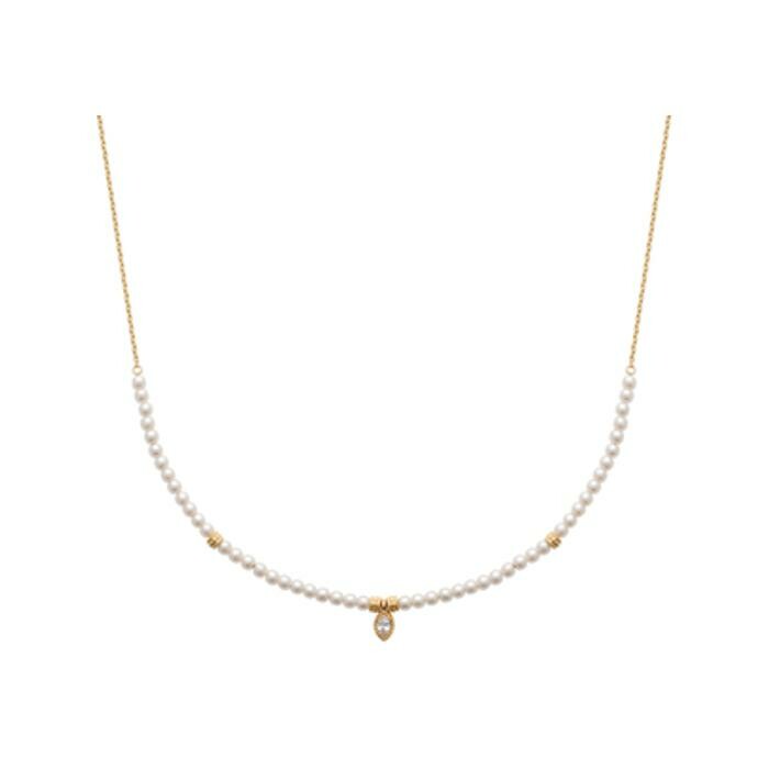 Collier en plaqué or, perle d'imitation et oxyde de zirconium Description détaillée